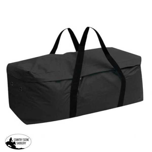 Showman ® Hay Bale Carrier. Made of water resistant nylon materials, this carrier is perfect for hauling an average size hay bale in the truck or trailer. Double zipper closure and nickel plated grommets. Measures 39" long x 14" tall x 18" wide.