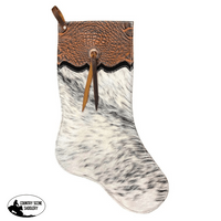 This stocking is the perfect addition to your western-themed Christmas decor! This unique stocking features a salt and pepper hair on cowhide front body and a uniquely shaped alligator cuff adding a touch of rustic charm to your holiday decorations.