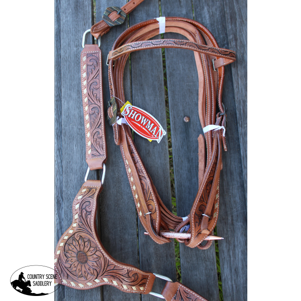 The Showman® Summerfield Browband Headstall and Breastcollar Set is the perfect blend of elegance and practicality for the modern equestrian! Crafted from medium leather, this set features exquisite floral and leaf tooling that adds a touch of artistry to your horse’s gear. The beautiful detailing reflects traditional craftsmanship while giving a nod to contemporary style, making it a fantastic choice for both competition and casual riding. With this headstall and breastcollar set, you can confidently strut into the arena, knowing your horse looks absolutely fabulous!