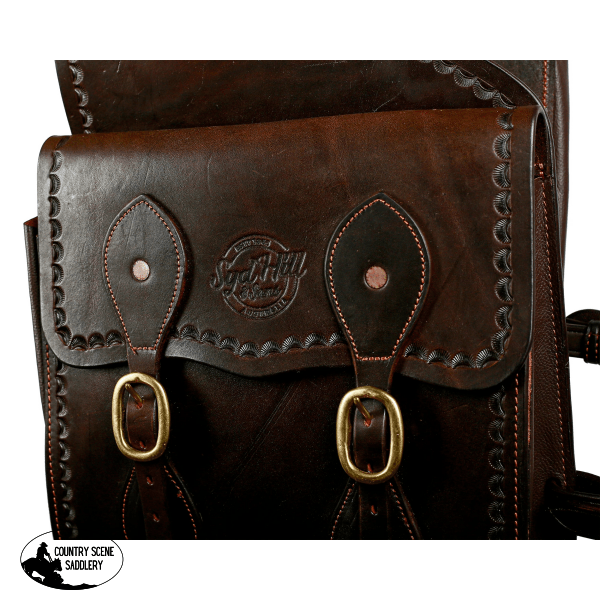 A traditional double saddle bag crafted from premium European leather with brass fittings.