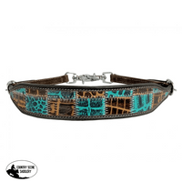 Showman ® Leather wither strap with teal gator patchwork pattern. Features dark oil leather with white stitching accents. Easily adjusts with 2 buckles 23"-30"